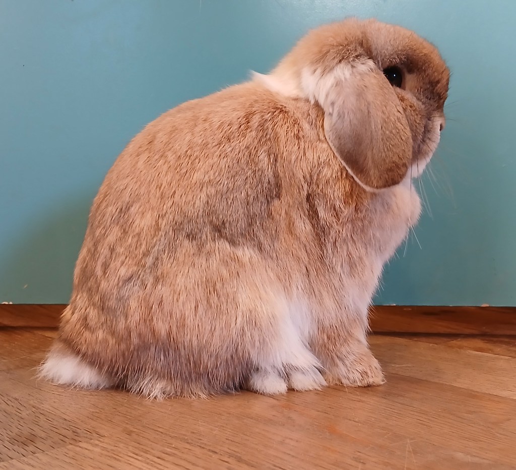 GHH Pretty Plum was also born on / / . She is a full sister to Apricot and is also a great mama. She has a small compact little body with good conformation. She is an Orange, VC. She produces babies with great conformation and beautiful colors. She consistently produces babies who start posing on their own as soon as they are out of the nest. Plum is my spunky girl and gets kind of sassy sometimes. She is a sweet bunny!!